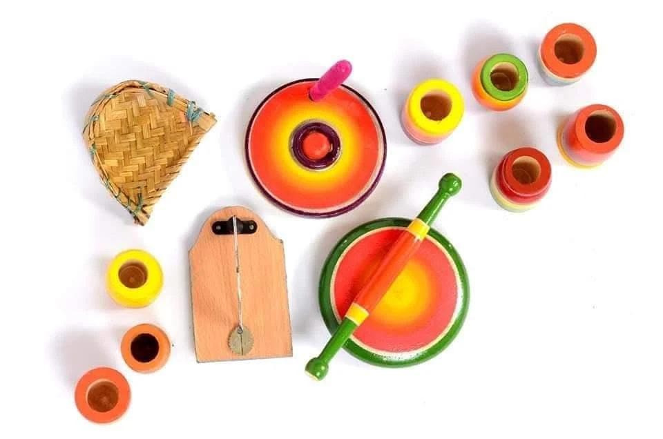 Bring back the charm of childhood with the Wooden Bhatukali Toy Set from Sawantwadi, an authentic handcrafted play set rooted in Maharashtrian culture. This traditional toy set includes miniature kitchen and household items made from durable wood and painted with natural, safe colors. Perfect for children’s imaginative play, festive occasions like Haldi-Kunku, Diwali, and Gauri celebrations, or as a heritage collectible and gift item.