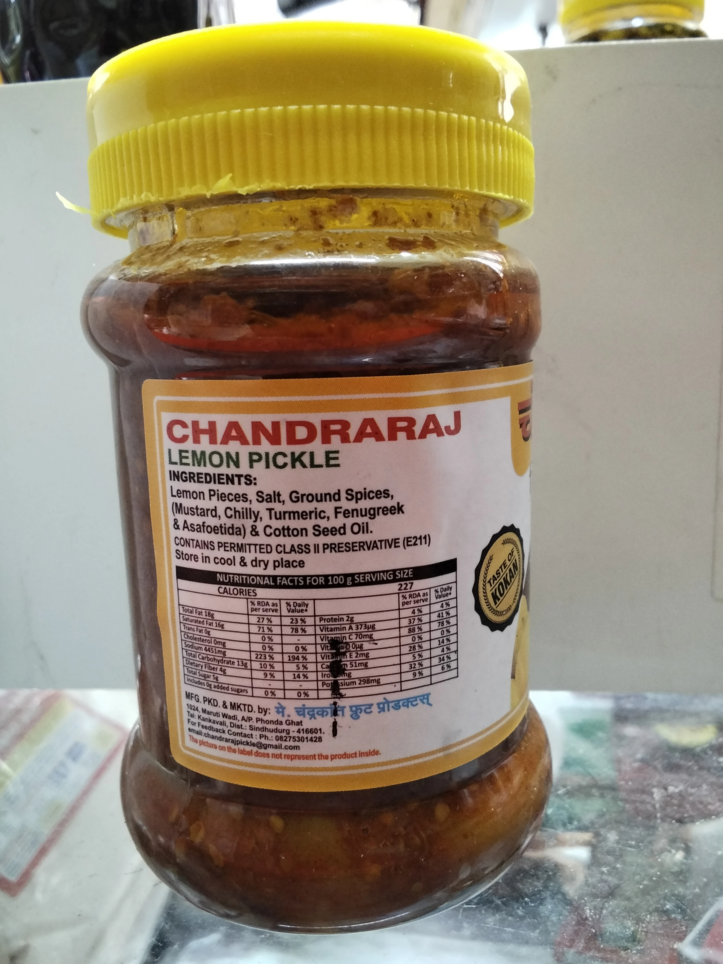 Chandraraj Lemon Pickle is a true essence of Maharashtrian tradition. Made with fresh, juicy lemons blended with the right mix of spices, salt, and oil, this pickle adds a perfect balance of tangy, spicy, and mildly sweet flavors to every meal. It not only enhances the taste but also makes your meals more appetizing and wholesome. Best enjoyed with chapati, paratha, bhakri, or curd, Chandraraj Lemon Pickle brings a burst of authentic homemade flavor to your plate.