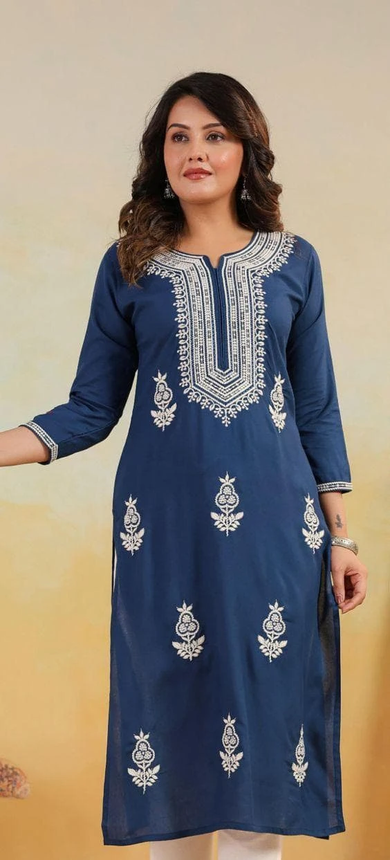 Step into timeless elegance with our Premium Rayon Chikankari Kurti, featuring exquisite hand-embroidered chikankari work. Crafted from soft, breathable rayon fabric, this kurti offers a perfect blend of comfort and style, making it ideal for office wear, festive occasions, or casual outings.