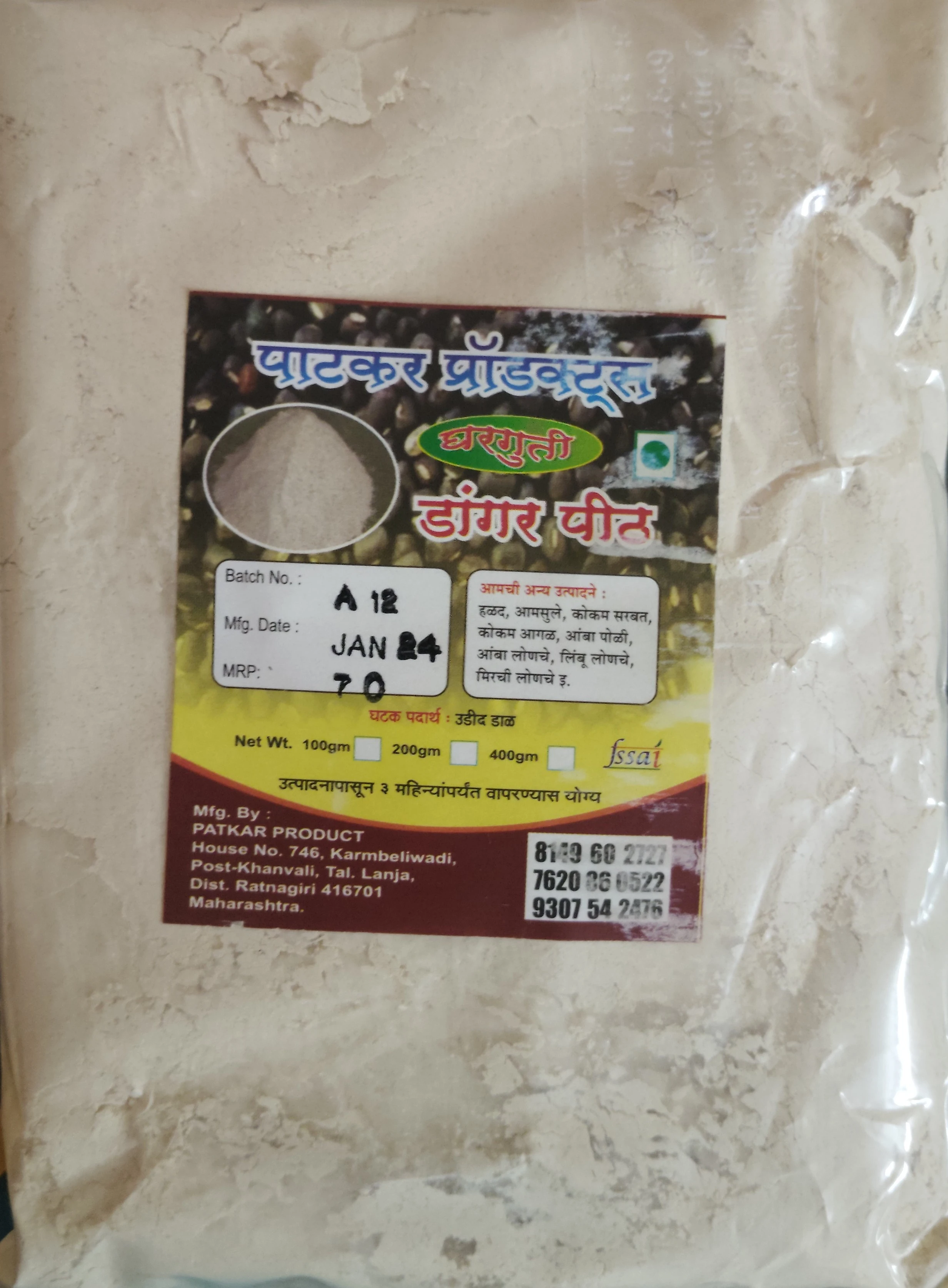 Dangar Pith is a traditional flour made by roasting urad dal (black gram). It is commonly mixed with onion, green chili, and coriander in water to prepare quick and flavorful Dangar – a popular side dish enjoyed with bhakri or chapati. Especially beneficial during winter, Dangar Pith is considered warming, nutritious, and easy to digest. A wholesome flour mix that brings authentic Konkani flavors to your meals.