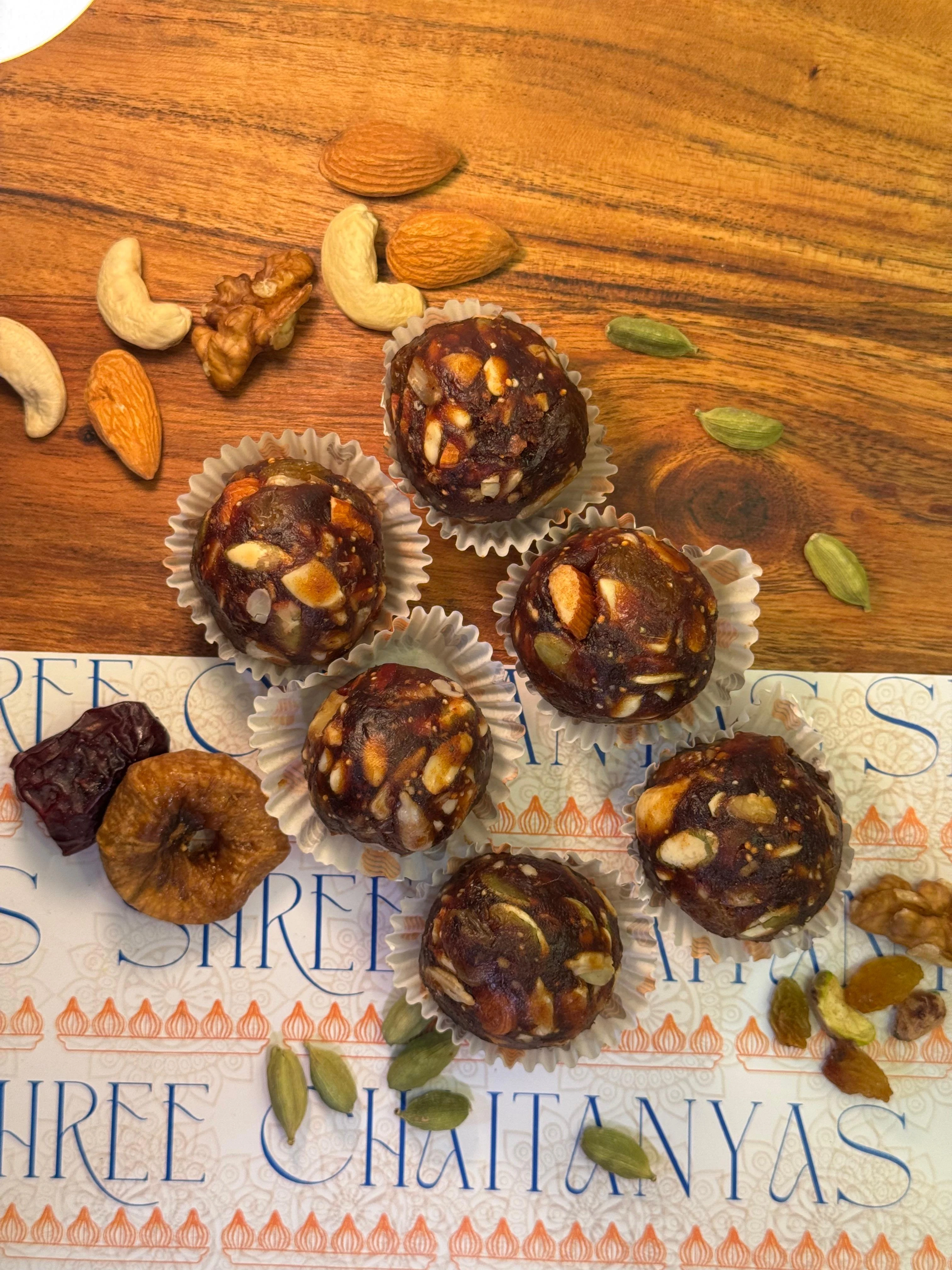 Dry fruit laddu is a healthy and energy-boosting Indian sweet or snack, made from a mixture of chopped nuts (like almonds, cashews, and pistachios), seeds, and dried fruits, primarily dates, which provide natural sweetness without added sugar or jaggery. These round treats are rich in protein, fiber, vitamins, and minerals, making them a nutritious choice for festive occasions or as a healthy everyday snack.