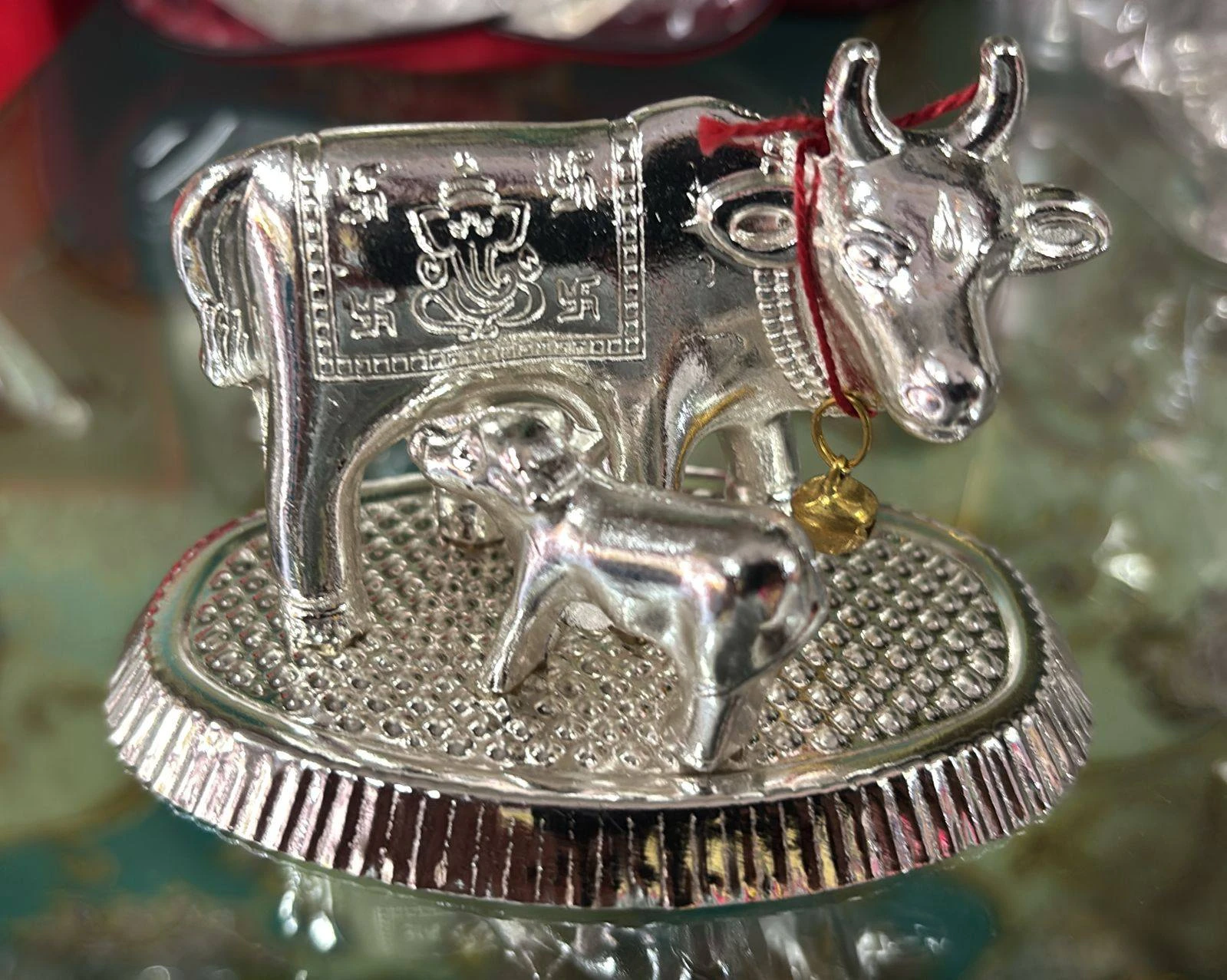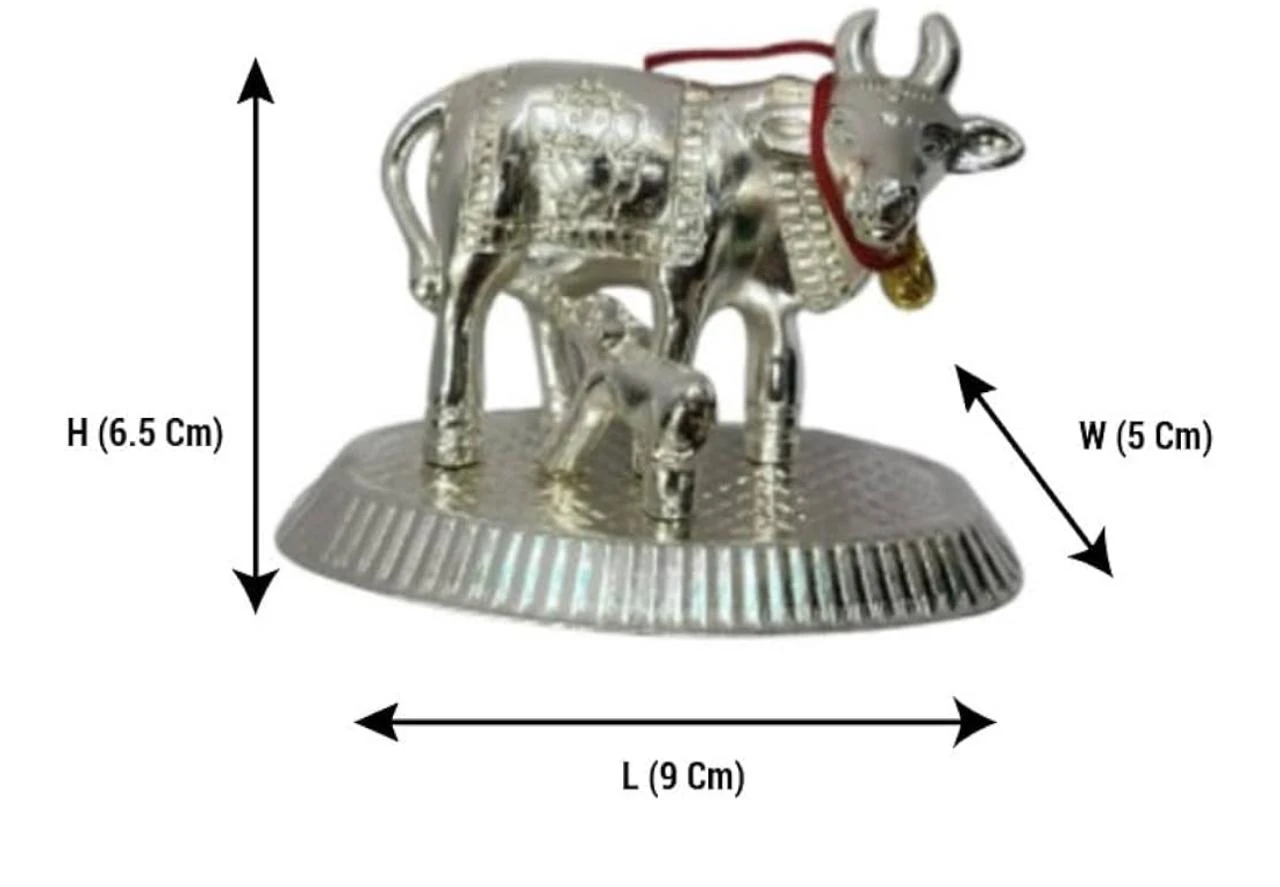 Bring home the blessings of prosperity, purity, and positivity with this beautifully crafted German Silver Kamdhenu Cow and Calf Idol. Known as the sacred mother of all cows, Kamdhenu symbolizes wealth, strength, and abundance in Hindu tradition.