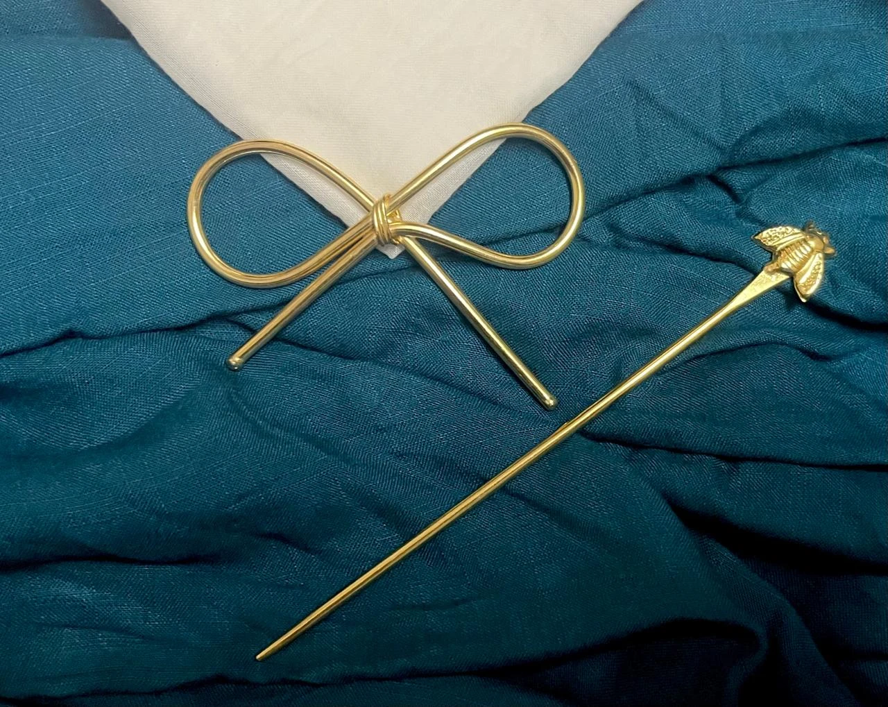 Add a touch of elegance to your hairstyle with this Bow Design Hairbun Stick, crafted from premium gold-finish brass metal. Its minimalist yet stylish bow shape makes it perfect for everyday wear, festive looks, traditional outfits, and even modern fashion styling.