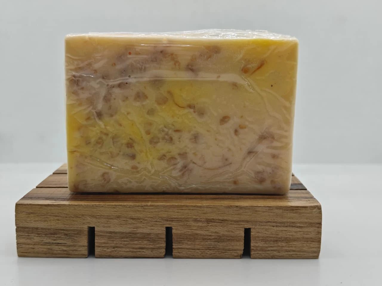 Indulge your skin in the luxurious blend of Handmade Oatmeal Saffron Soap. Infused with the soothing goodness of oatmeal and the royal touch of saffron, this soap gently exfoliates, nourishes, and brightens the skin. Oatmeal helps remove dead skin cells, calms irritation, and keeps the skin soft, while saffron enhances radiance, reduces pigmentation, and gives your skin a healthy glow. Perfect for daily use, it keeps your skin naturally fresh and luminous.