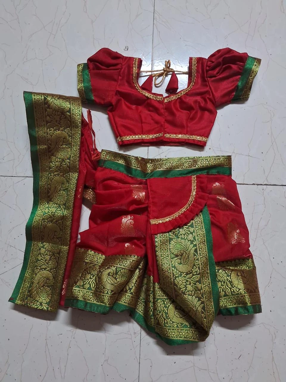 Perfect for festivals, cultural events, fancy dress competitions, school functions, and weddings, this saree makes your child look graceful and festive-ready. Made with soft and skin-friendly fabric, it allows ease of movement so your little one can enjoy the occasion with confidence.