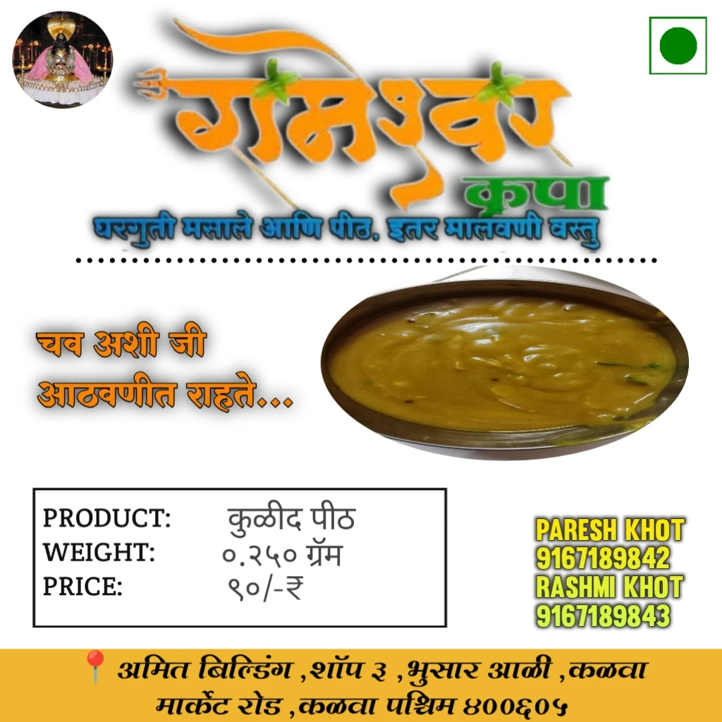 Rameshwar Krupa Kulith Pith is a premium-quality horse gram flour, carefully processed to retain its natural nutrients and authentic taste. Rich in protein, iron, calcium, and dietary fiber, it is ideal for a balanced diet and is widely used in Maharashtrian and South Indian kitchens. Perfect for making Pithla, Usal, Dosa, Paratha, and Soup, it helps improve digestion, boost energy, and support weight management.