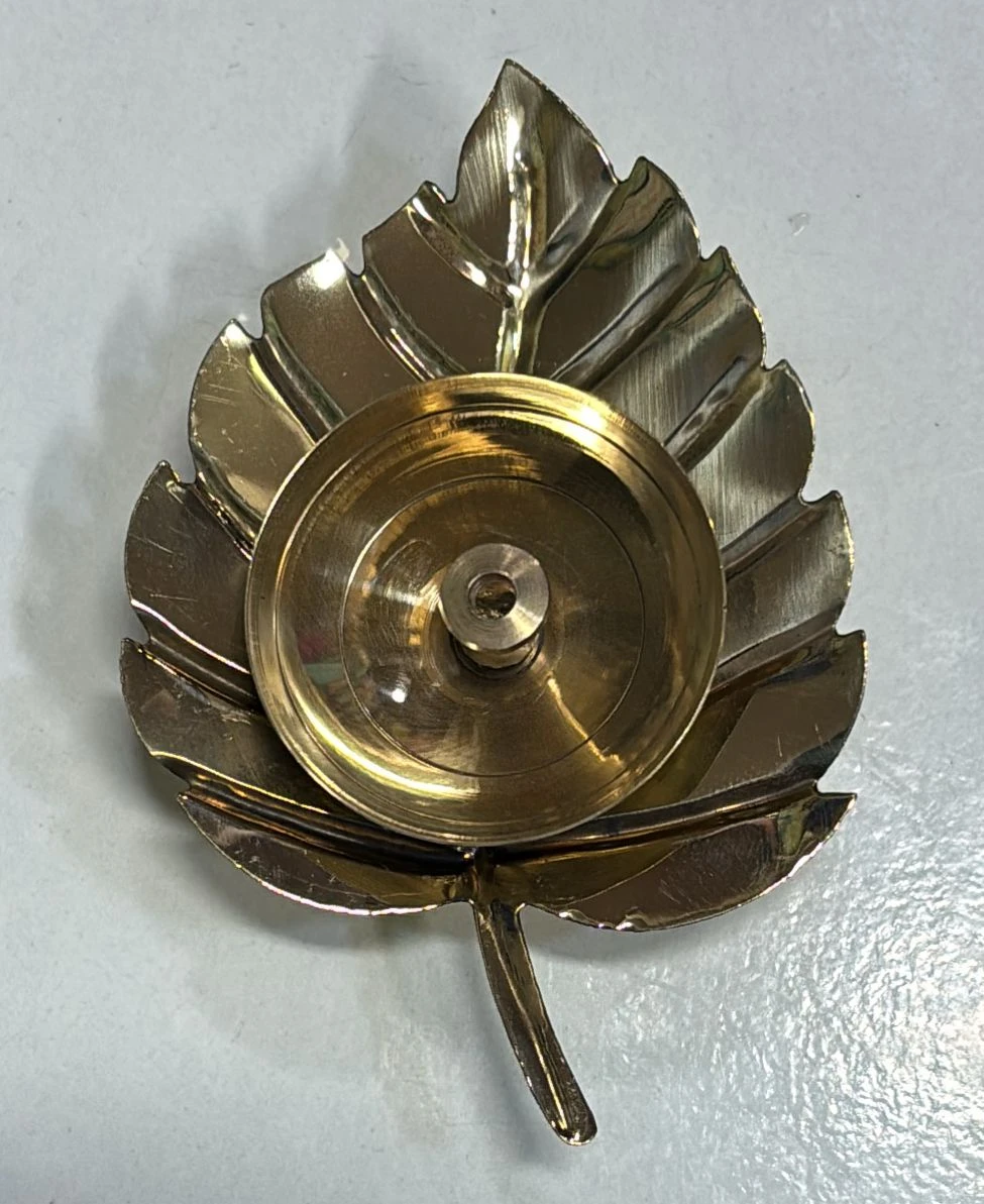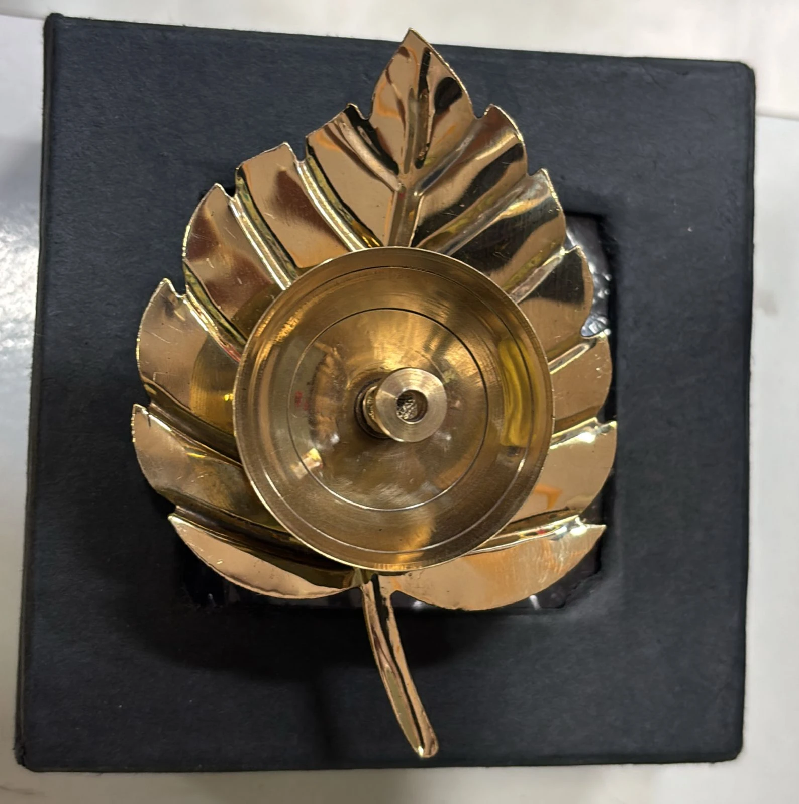 Enhance your festive rituals with this elegant Brass Leaf Design Diya, beautifully crafted to bring positivity and light into your home. Made from premium-quality brass, this diya is shaped like a leaf, symbolizing growth, prosperity, and devotion.