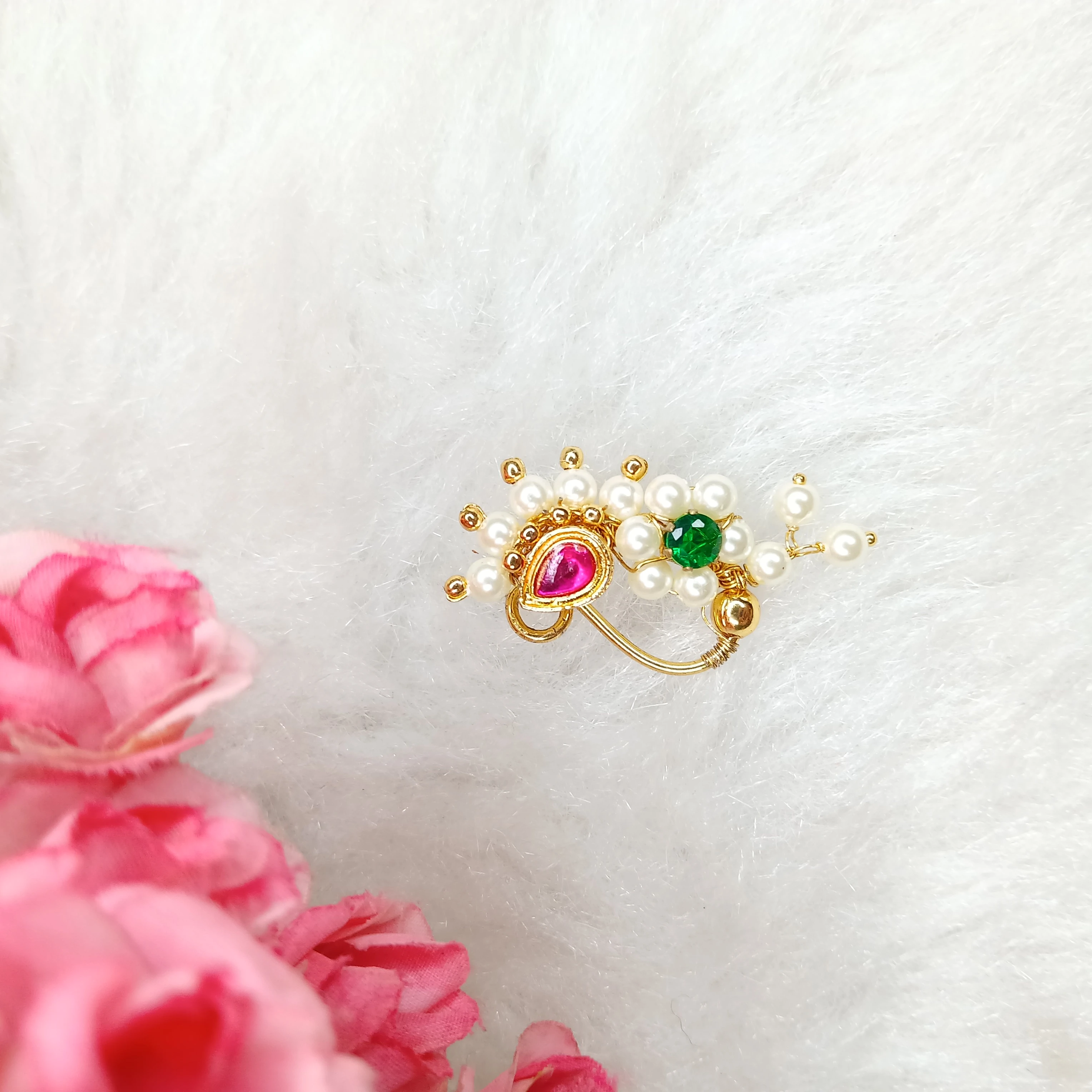 Every piece is purely handmade, ensuring that each Nath is unique in design and craftsmanship. Perfect for weddings, festive occasions, or cultural celebrations, this Nath adds an authentic traditional charm to your look.