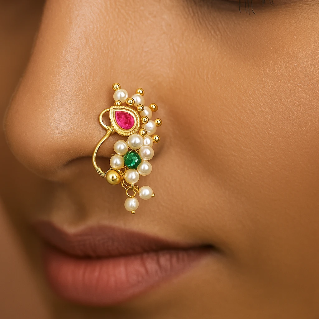 Own a piece of tradition with this Moti Nath and let your heritage shine with pride.