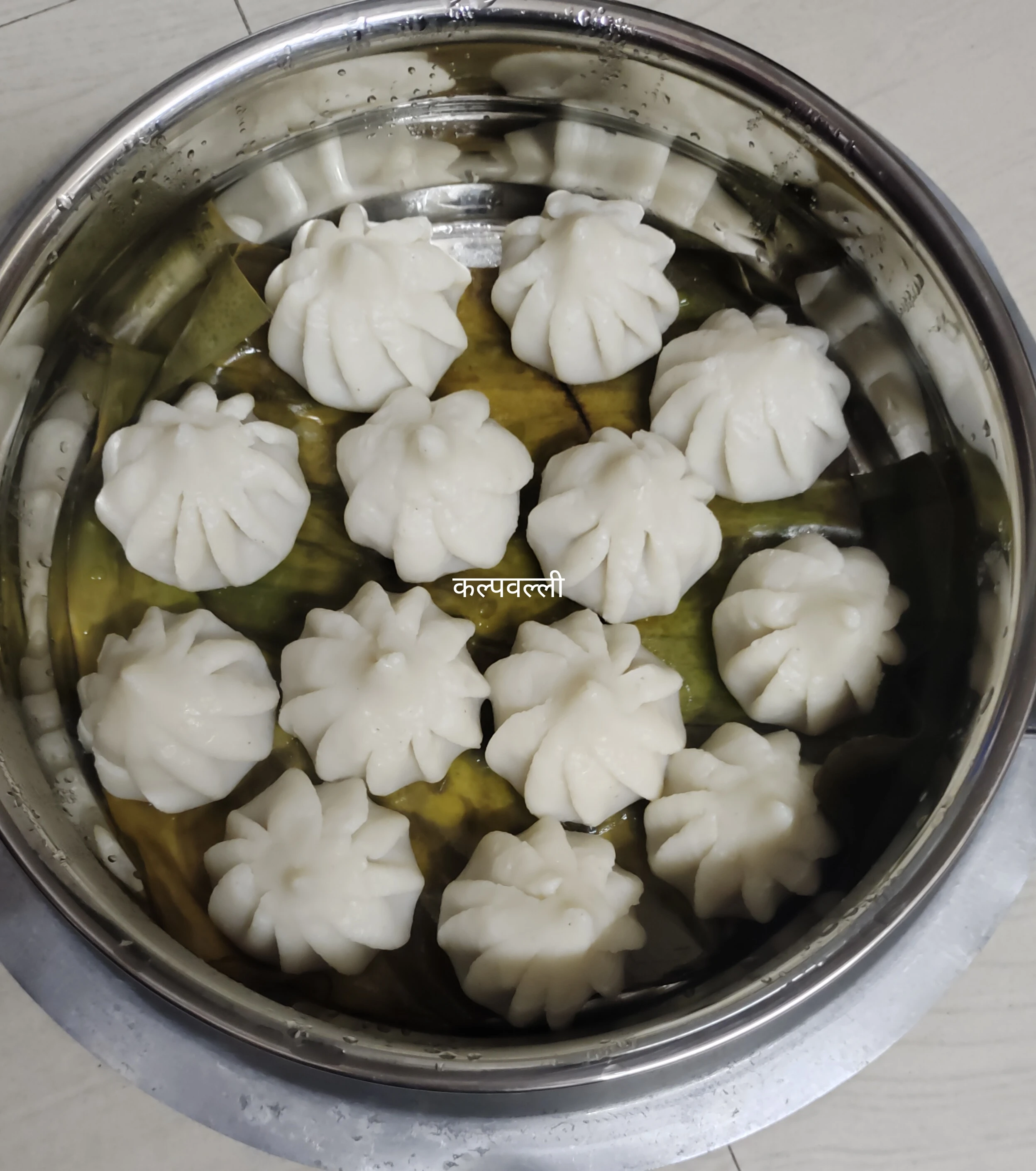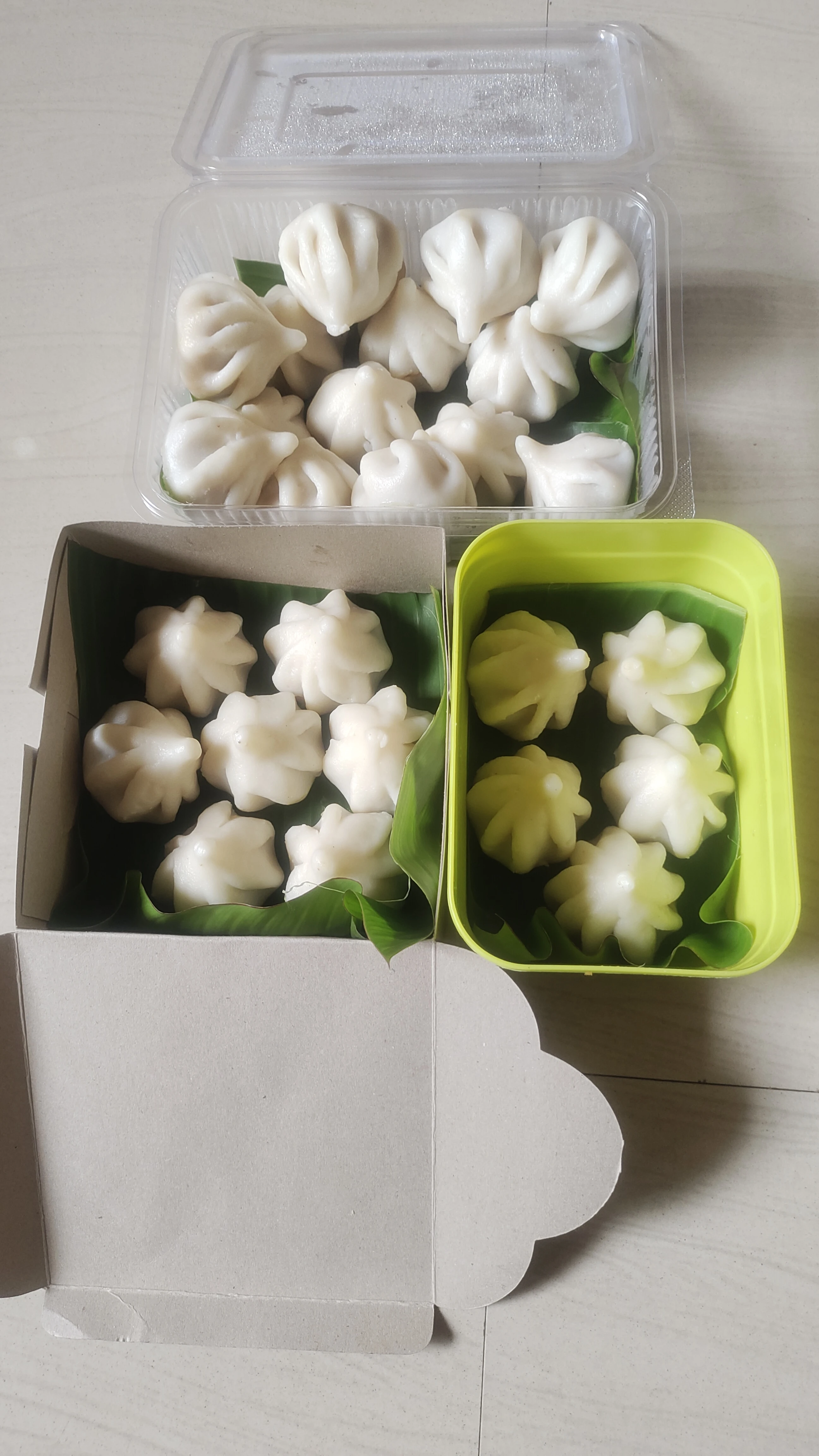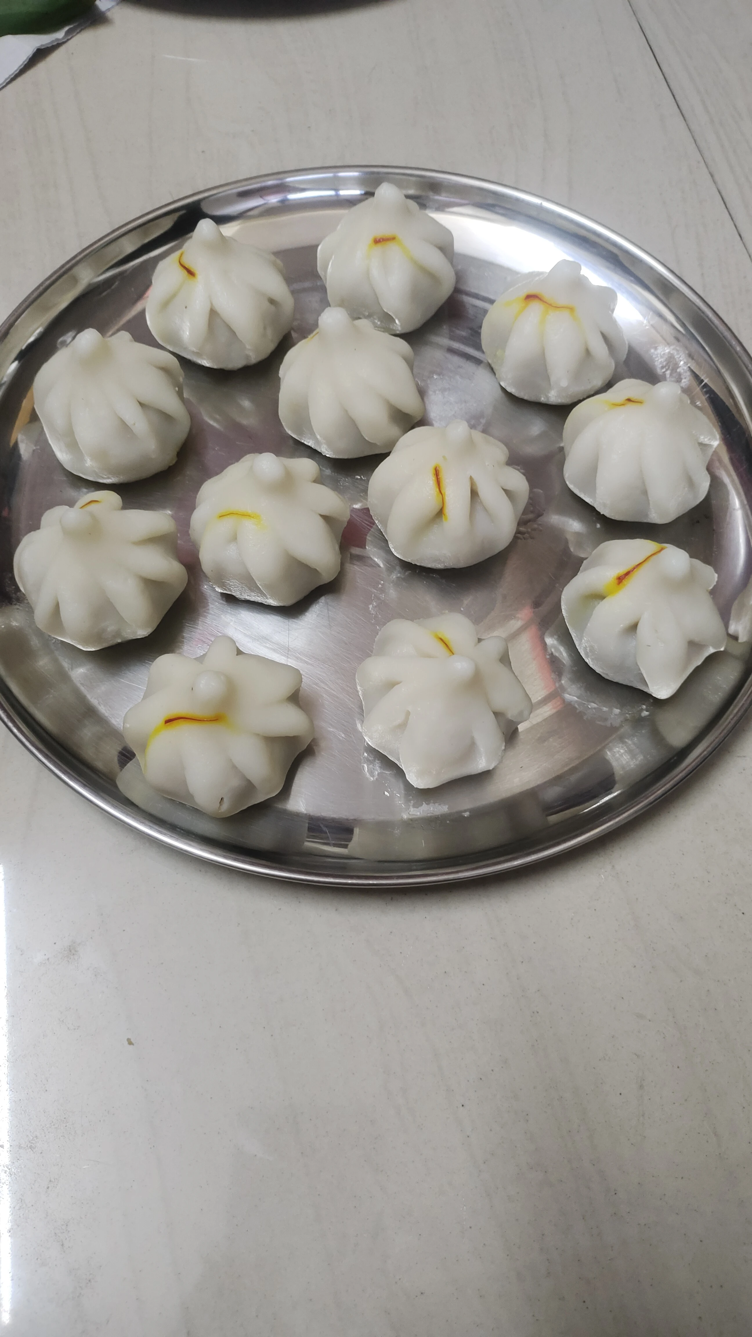 "Bappa special modak🌺" Modak contains nutritious ingredients like rice, ghee, coconut, and jaggery. Coconut modaks are rich in fiber. Therefore, they are beneficial for health.