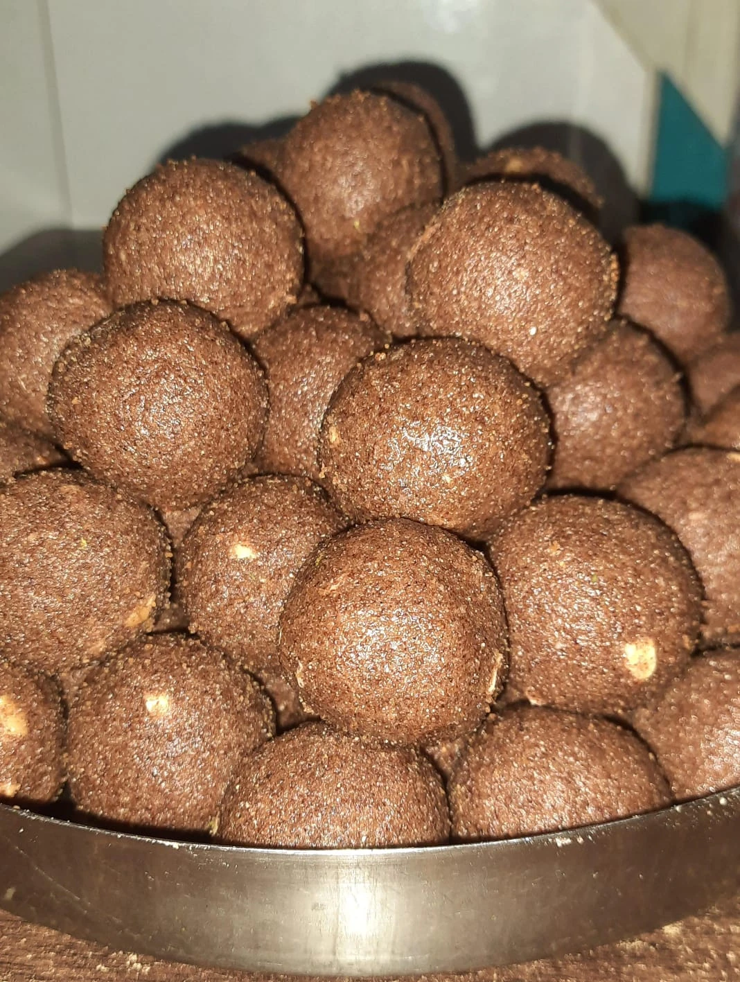 Nachni Laddu, also known as Ragi Laddu, is a nutritious Indian sweet treat made primarily from ragi (finger millet) flour, jaggery, and ghee, often with added dry fruits and seeds like coconut, dates, and sesame. This spherical, gluten-free delicacy is a rich source of calcium, iron, fiber, and other essential vitamins and minerals, making it a healthy snack for all age groups, known for promoting digestion, bone strength, and energy.