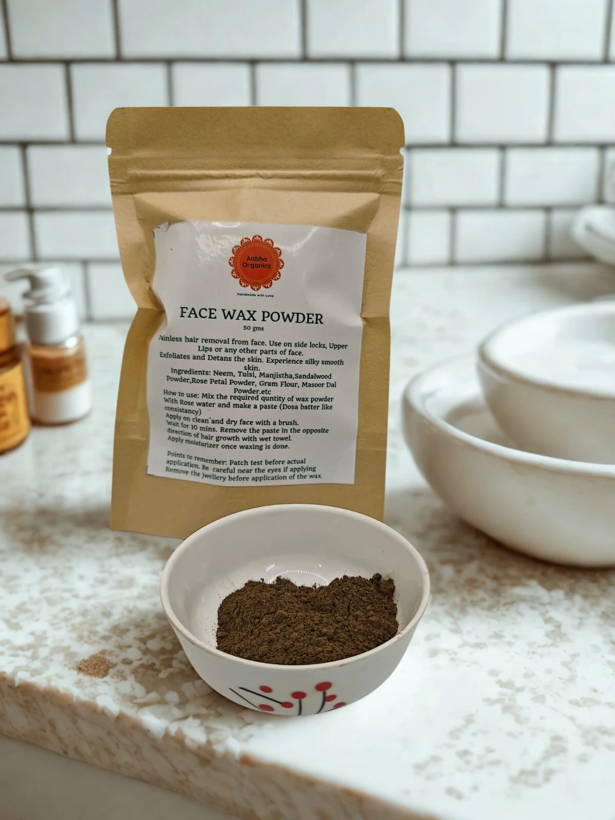 Say goodbye to harsh chemical waxes with our 100% natural, handmade Face Wax Powder, specially formulated for gentle, painless facial hair removal. This unique blend of Ayurvedic herbs not only removes unwanted hair but also brightens, soothes, and nourishes your skin.