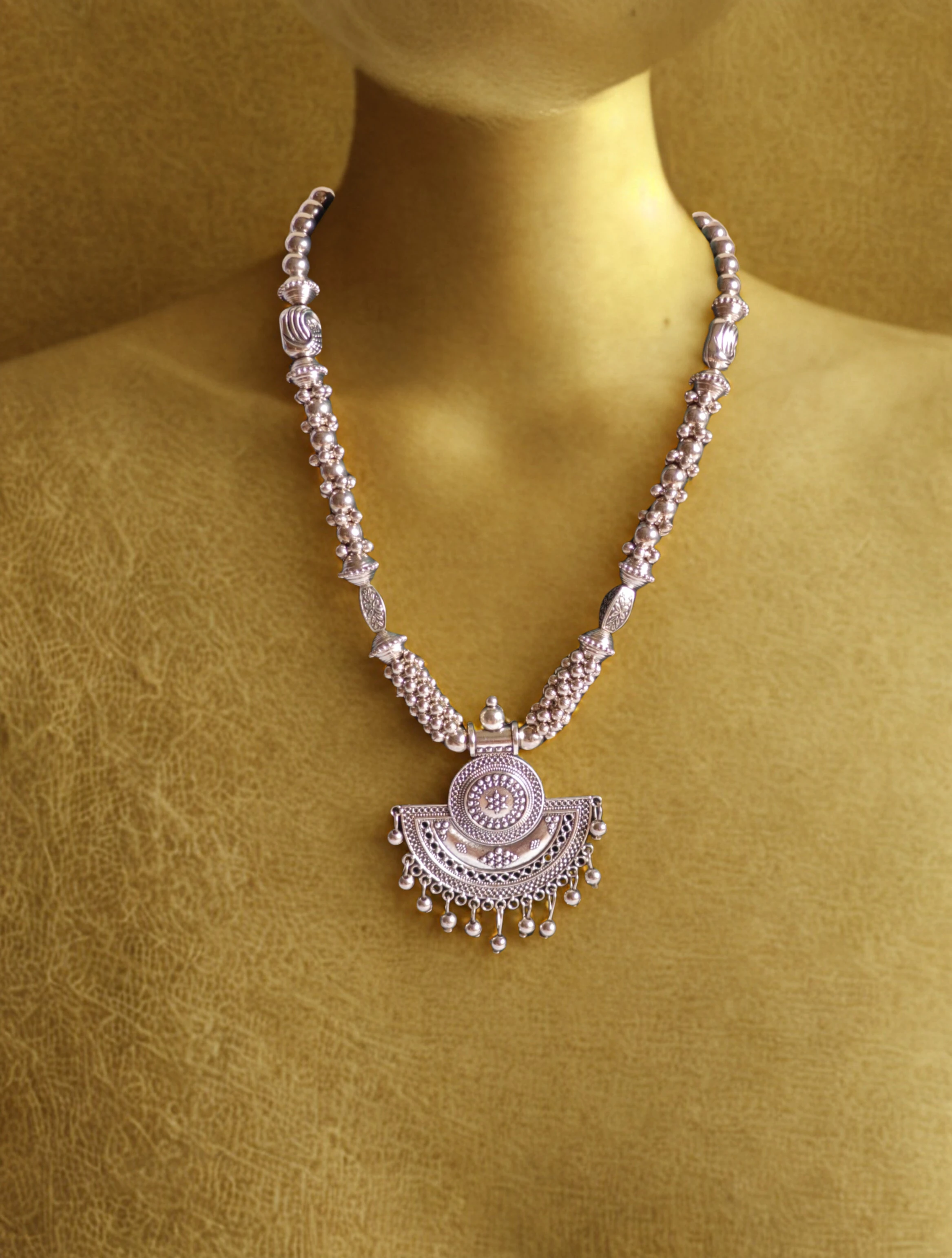 Elegant Oxidised Necklace Set for Women. Add a touch of timeless charm to your ethnic or boho look with this stunning oxidised necklace set. Crafted with intricate detailing, this set includes a beautifully designed necklace paired with matching earrings, making it the perfect accessory for festive occasions, weddings, or casual ethnic wear.