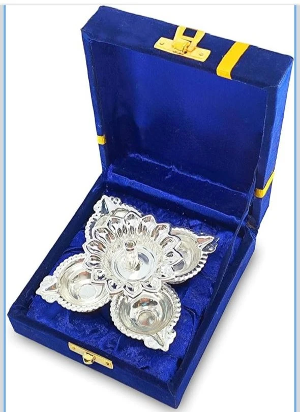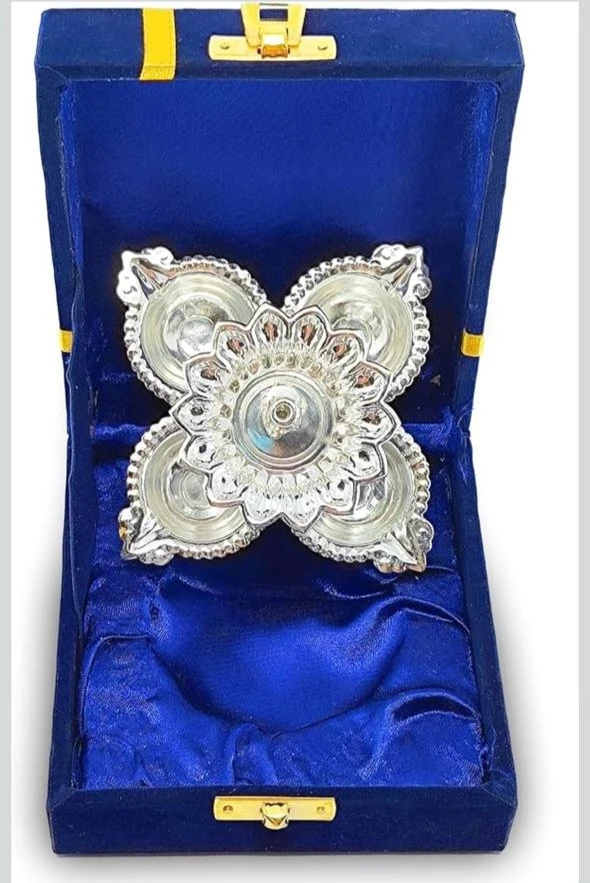 Illuminate your prayers with this Panchmukhi German Silver Diya, crafted with precision and elegance. Designed in a five-face diya style (पंचमुखी दिवा), it symbolizes positivity, devotion, and prosperity in every home. The diya is made from premium-quality German silver, giving it a radiant shine and durability.