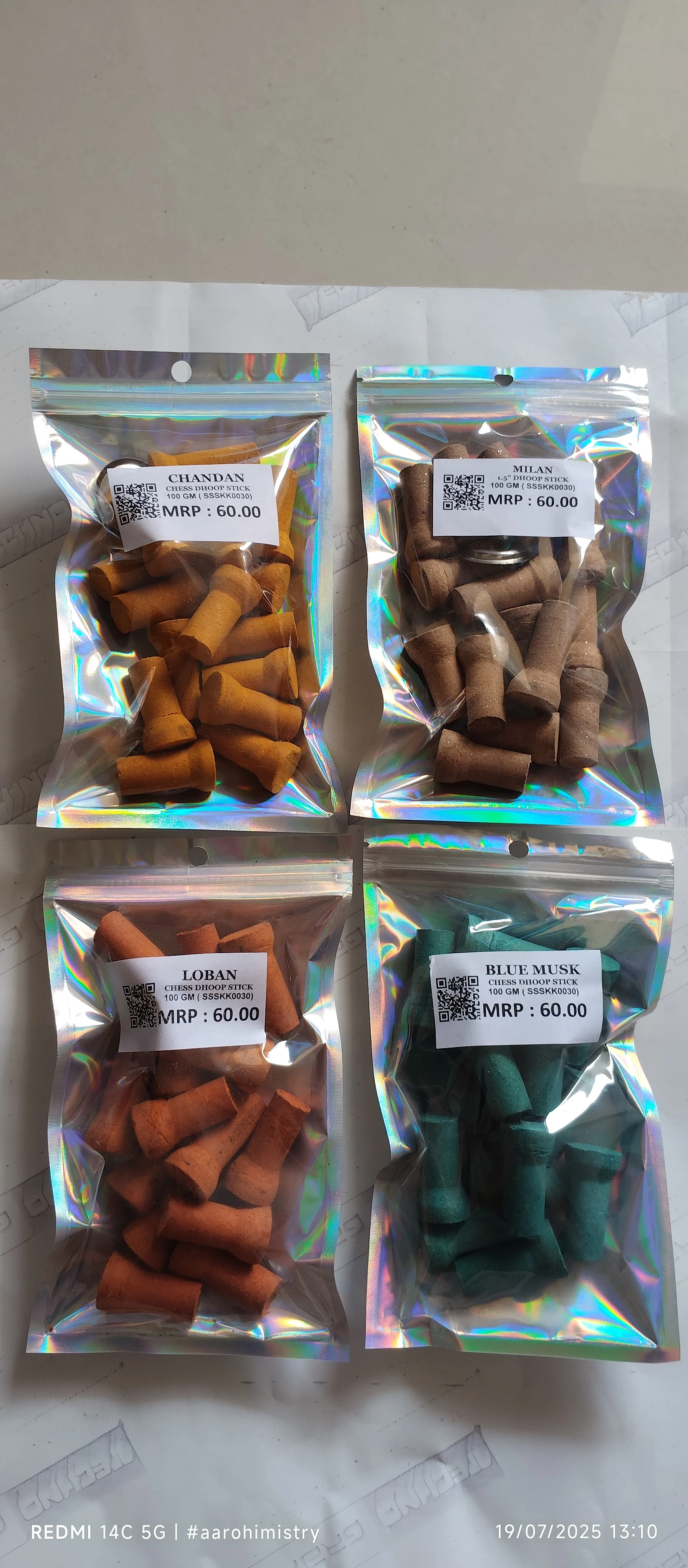 Bring home positivity and divine fragrance with CHESS BULLET Dhoop Sticks. Each 100g pack includes assorted premium fragrances – Milan, Blue Musk, Chandan, Chintan Loban, and Kesar. These bullet-shaped dhoop sticks are long-lasting, easy to use, and come with a free stand holder for convenient burning.