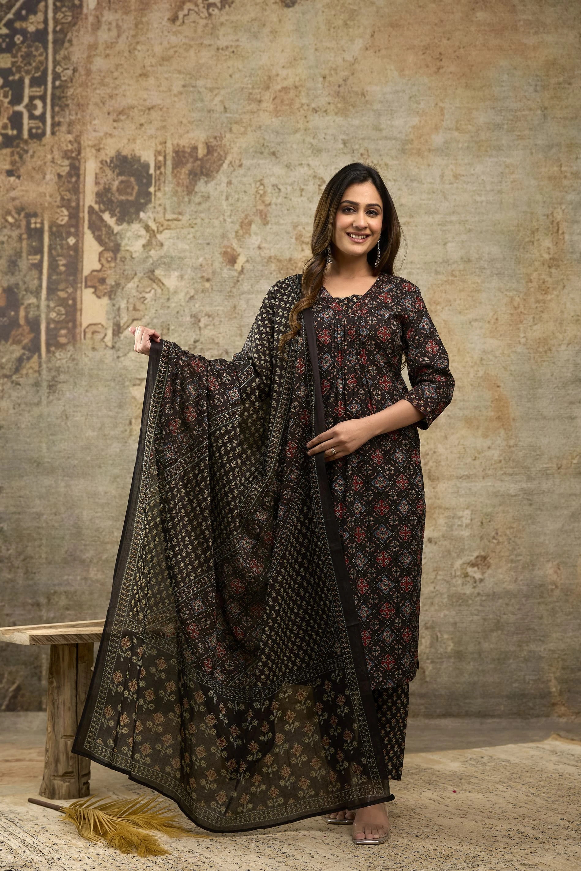 Add a touch of traditional elegance to your wardrobe with this Sanganeri Print Cotton Kurti Set.