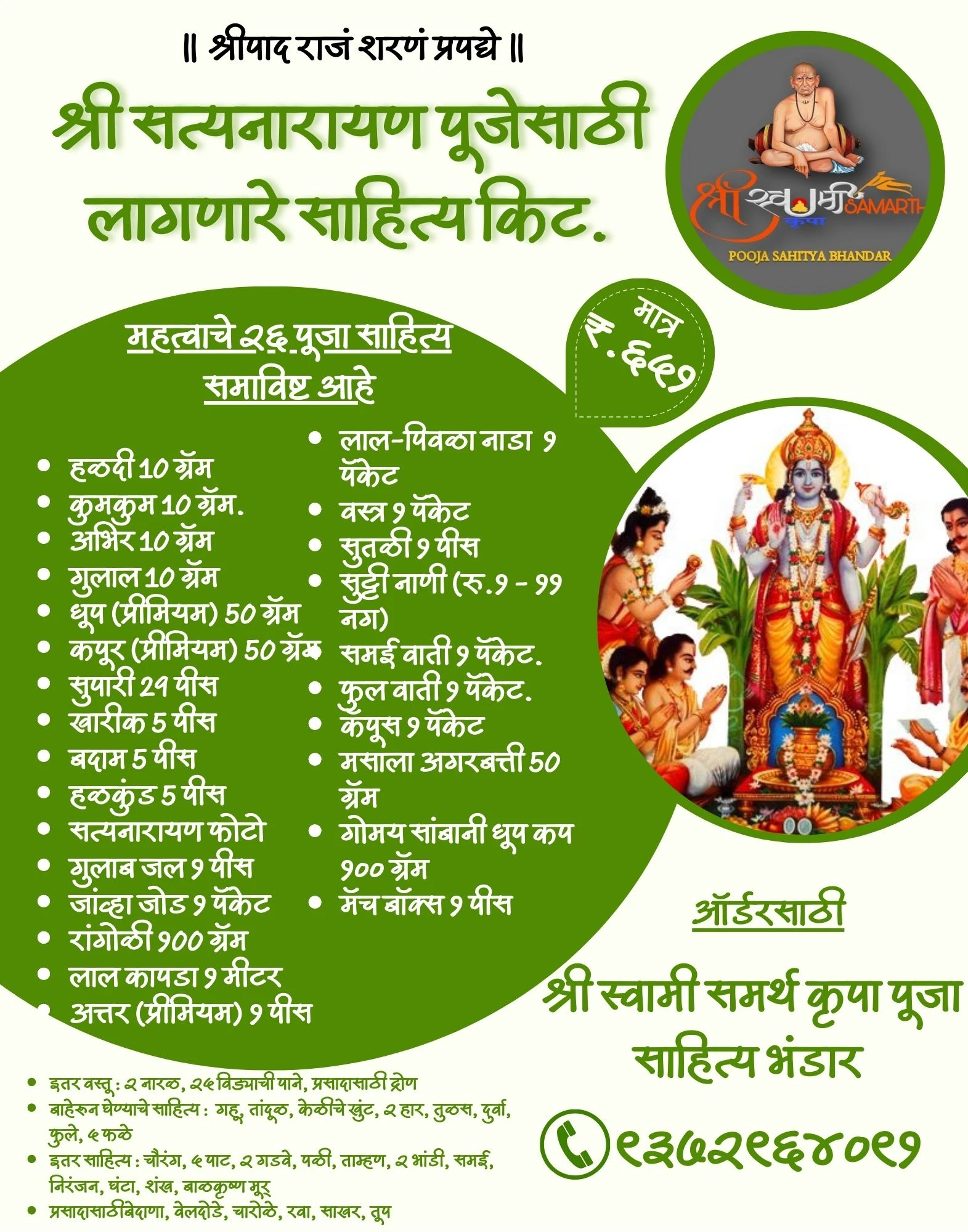 Important 26 Pooja Sahitya included in Shree Satyanarayan Puja kit