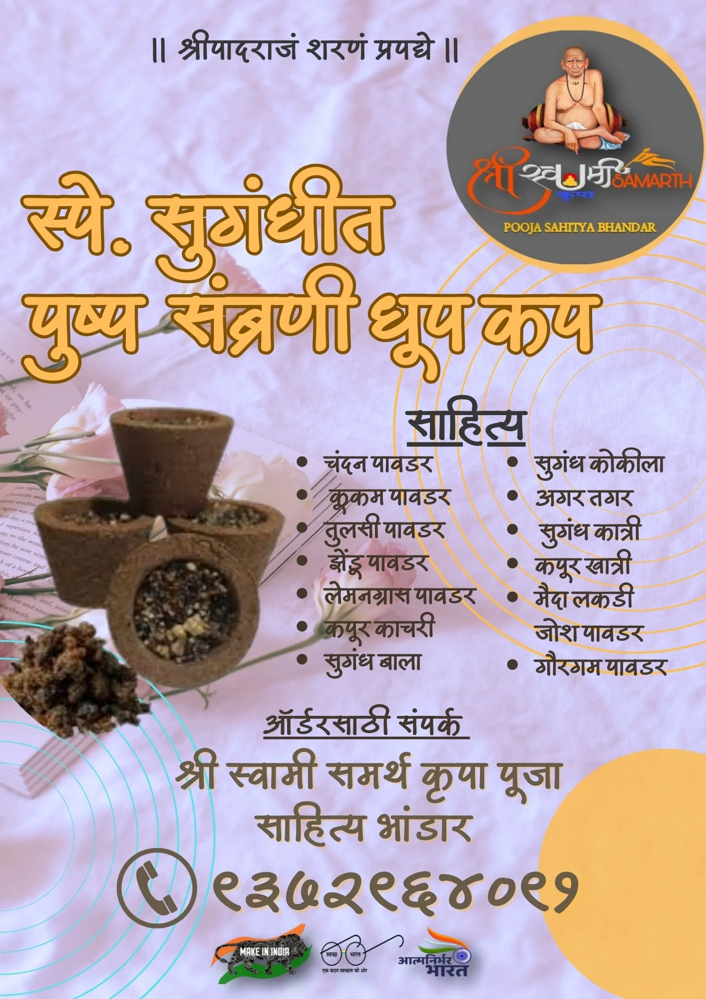 Sandalwood powder, kukum powder, tulsi powder, marigold powder, lemongrass powder, camphor kachri, scented bala, scented kokila, agar tagar, scented scissors, camphor sure, maida wood, josh powder, gauram powder
