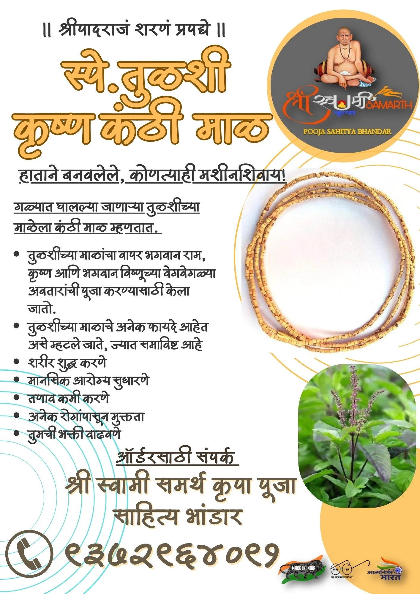 The Special Tulsi Krishna Kanthi Mala is made from pure and original Tulsi (Holy Basil) beads, traditionally worn by devotees of Lord Krishna and Vishnu. This sacred mala is believed to protect the wearer from negative energies, bring spiritual upliftment, and strengthen devotion. Each bead is carefully handcrafted to maintain purity and authenticity. Ideal for pooja, daily wear, and meditation.