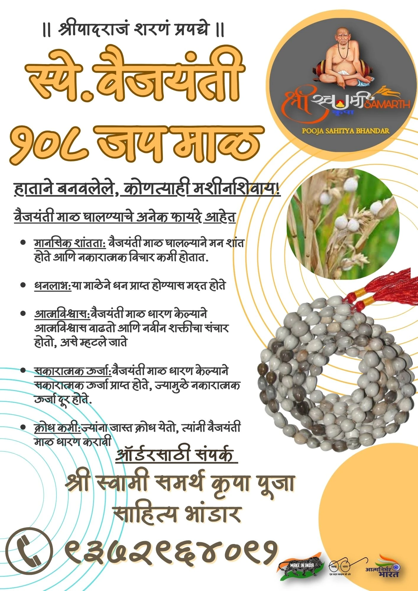 Experience the spiritual and mental benefits of the Special Vaijayanti 108 Beads Japa Mala. Known for its powerful effects on mind, body, and spirit, wearing this mala is said to bring mental peace, positive energy, self-confidence, and wealth.