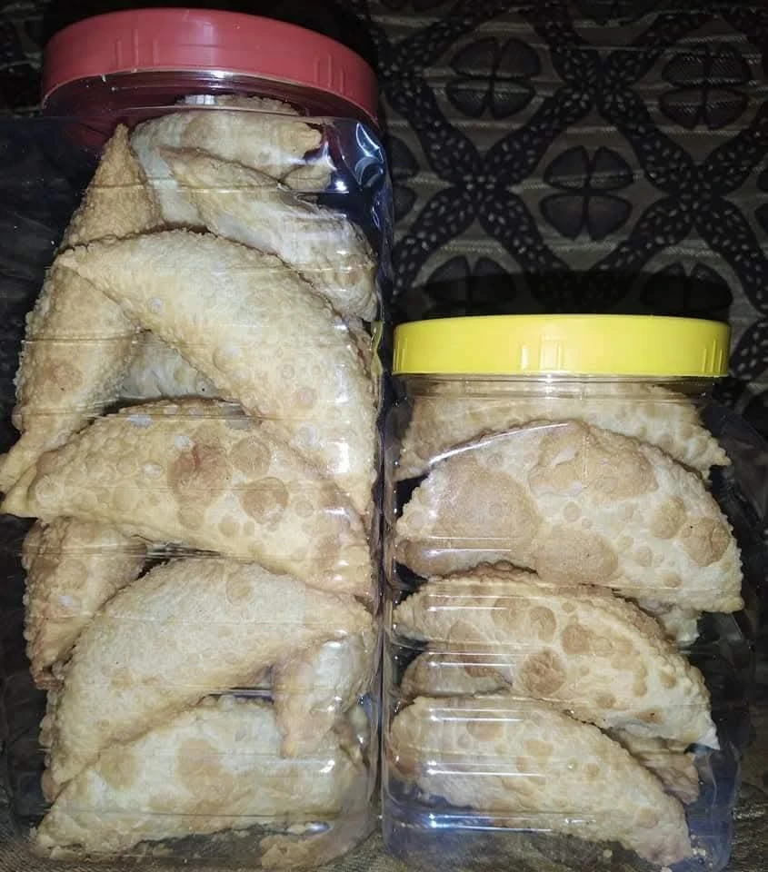 Chana Saran Karanji is a festive delight and a must-have during Diwali Faral. Made with roasted whole chana dal filling blended with jaggery, dry coconut, cardamom, nutmeg, cashews, and raisins – enclosed in a crispy outer shell. Each bite offers the perfect balance of crunch and sweet aromatic richness. 🎉