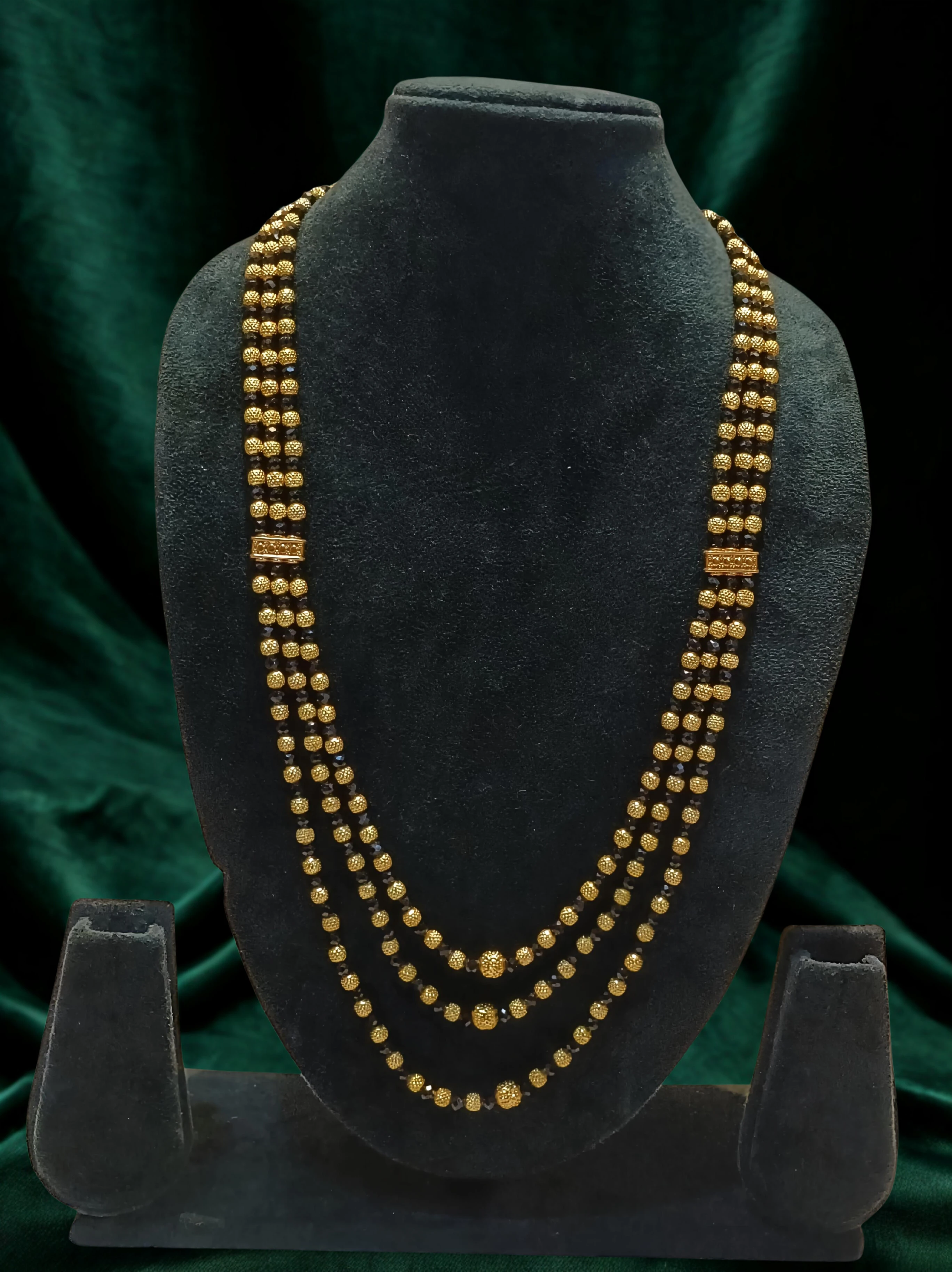 Add a touch of timeless tradition to your spiritual ensemble with this 3-layer Bormala, expertly handcrafted using shimmering black crystals and micro gold-plated copper beads. Perfect for traditional events, poojas, or daily spiritual wear, this Bormala reflects rich cultural heritage and devotion.
