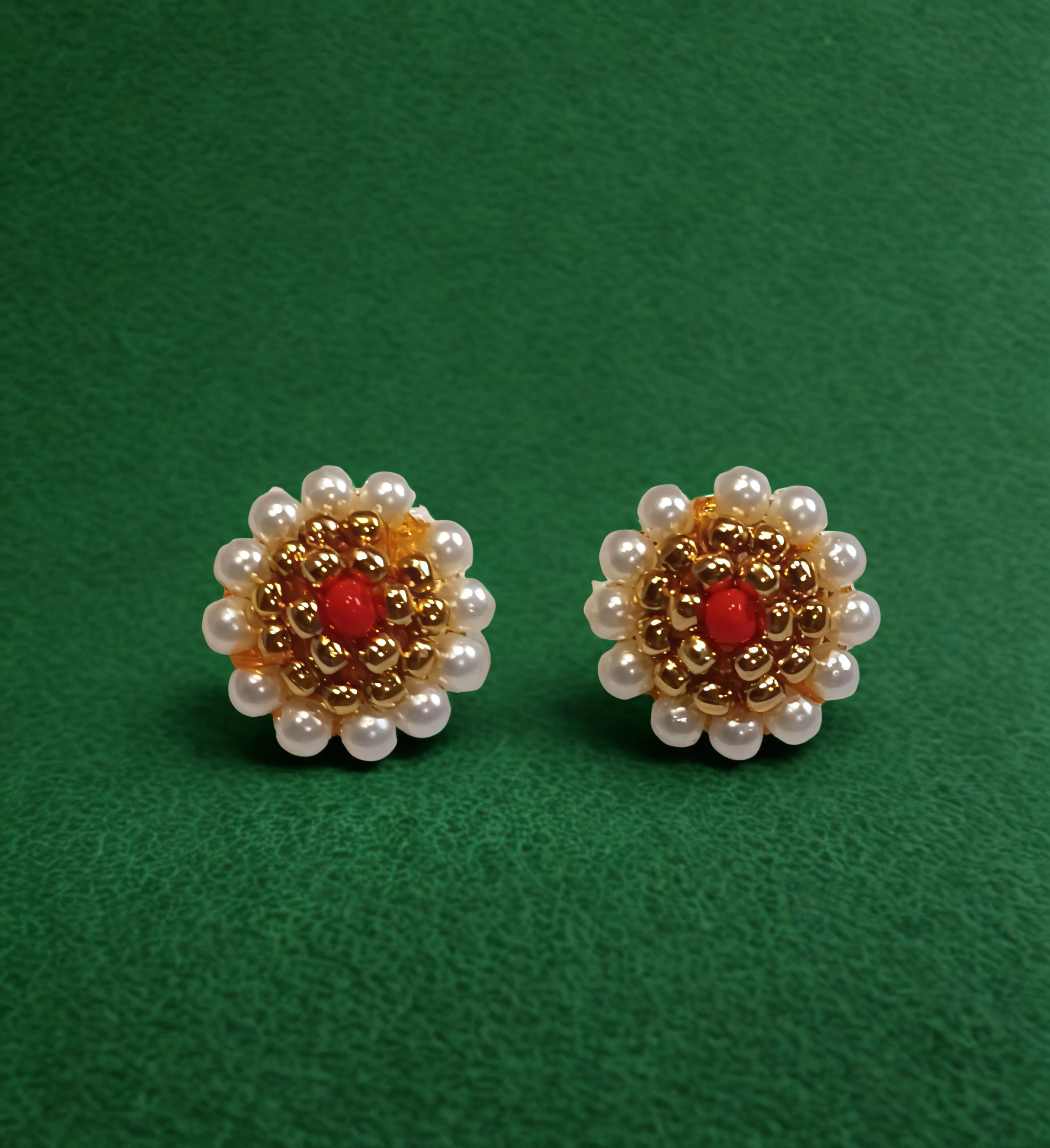 Elevate your ethnic charm with these beautifully handcrafted Moti Kudi Earrings. Featuring a graceful blend of white, gold, and orange pearls, these earrings are a tribute to traditional Indian craftsmanship. Ideal for festivals, weddings, and cultural occasions, these earrings add a touch of regal elegance to your look.