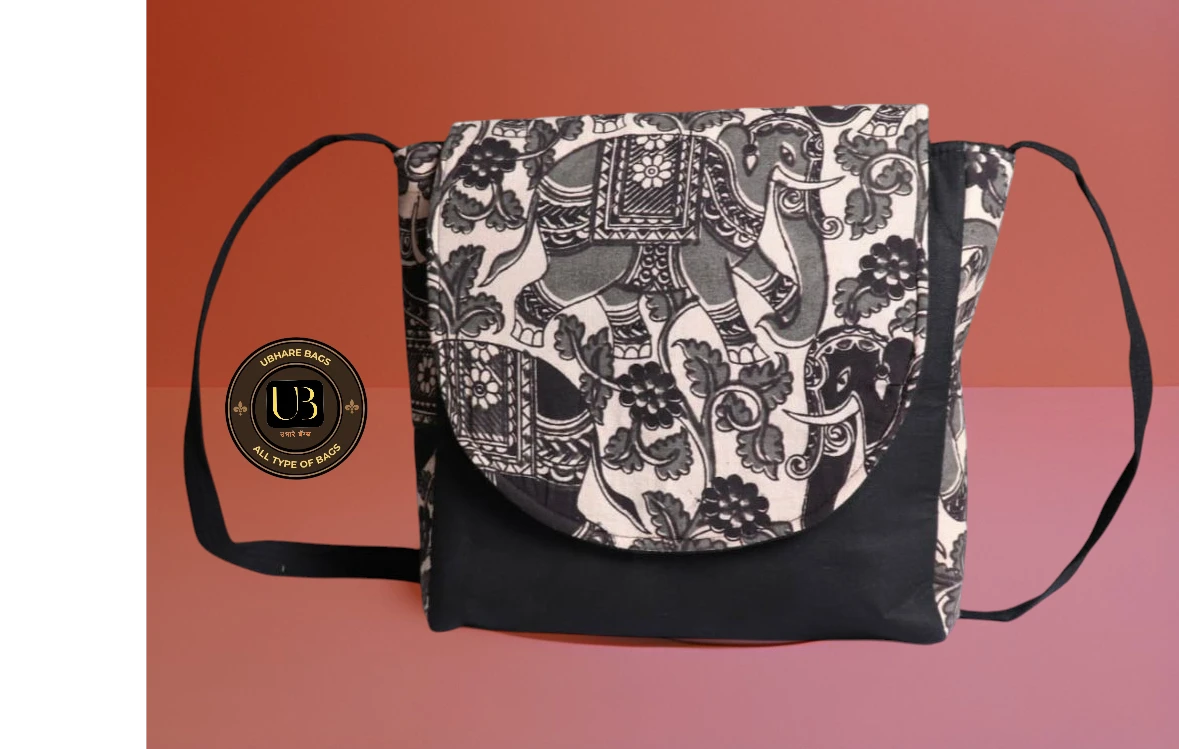 Elevate your everyday style with the Ubhare Bags Kalamkari Art Sling Bag, a perfect fusion of tradition and modernity. Handcrafted with authentic Kalamkari block-printing technique, this sling bag features intricate black-and-white motifs inspired by ancient Indian mythology, depicting graceful figures, floral patterns, and cultural storytelling elements on premium cotton canvas. The flap-over design with a solid black base adds a contemporary edge, while the adjustable long strap ensures comfortable crossbody wear.